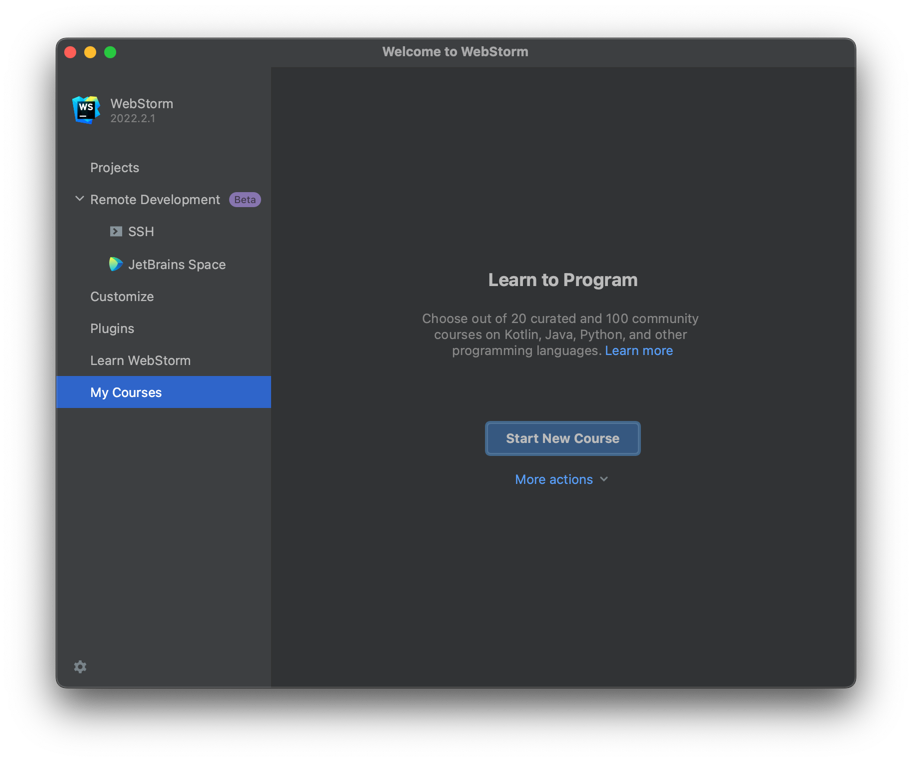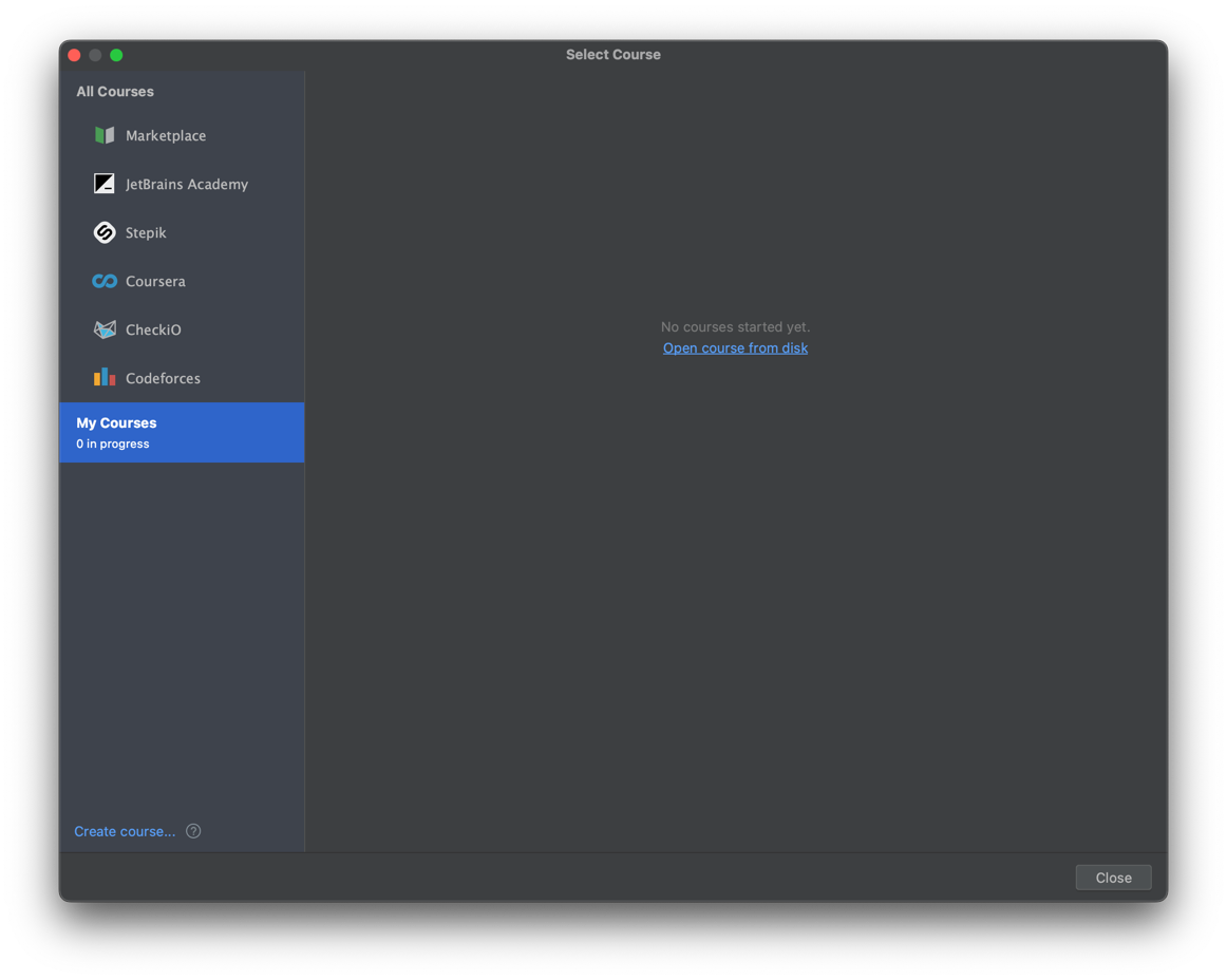 Start new Course, puis sur My courses et enfin sur Open course from disk